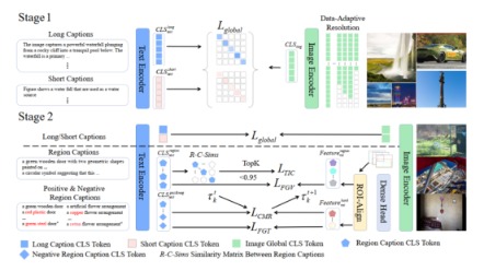 在训练方法上,模型采用了具有革命性的两阶段策略。其关键的第二阶段摒弃了传统CLIP的“整体对整体”的粗放对齐模式,升级为“局部对局部”的精细对齐,这正是其实现细粒度理解的核心所在。